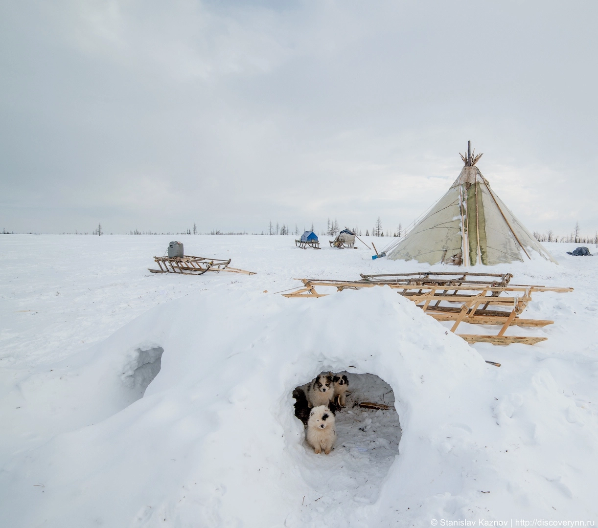 13. У семьи много оленегонных собак включая совсем крохотных, которые жили в собственной норке из снега…