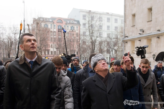 Конечно, кому же еще рулить в новогодней сказке, кроме Деда Мороза. Его роль исполнил лидер ЛДПР Владимир Жириновский. Правда, в отличие от Деда-Мороза, Вольфович не раздавал подарки, а получал. Под прицелами доброй сотни камер Прохоров подарил Ё-мобиль Жириновскому. Это очень грамотно с точки зрения пиара, к тому же у подарка есть старая история. В 2012 году на теледебатах Прохоров обещал Жириновскому подарить Ё-мобиль — и вот, выполнил обещание. Получилось вполне в национальной традиции — Жириновский ждал обещанного три года или около того.