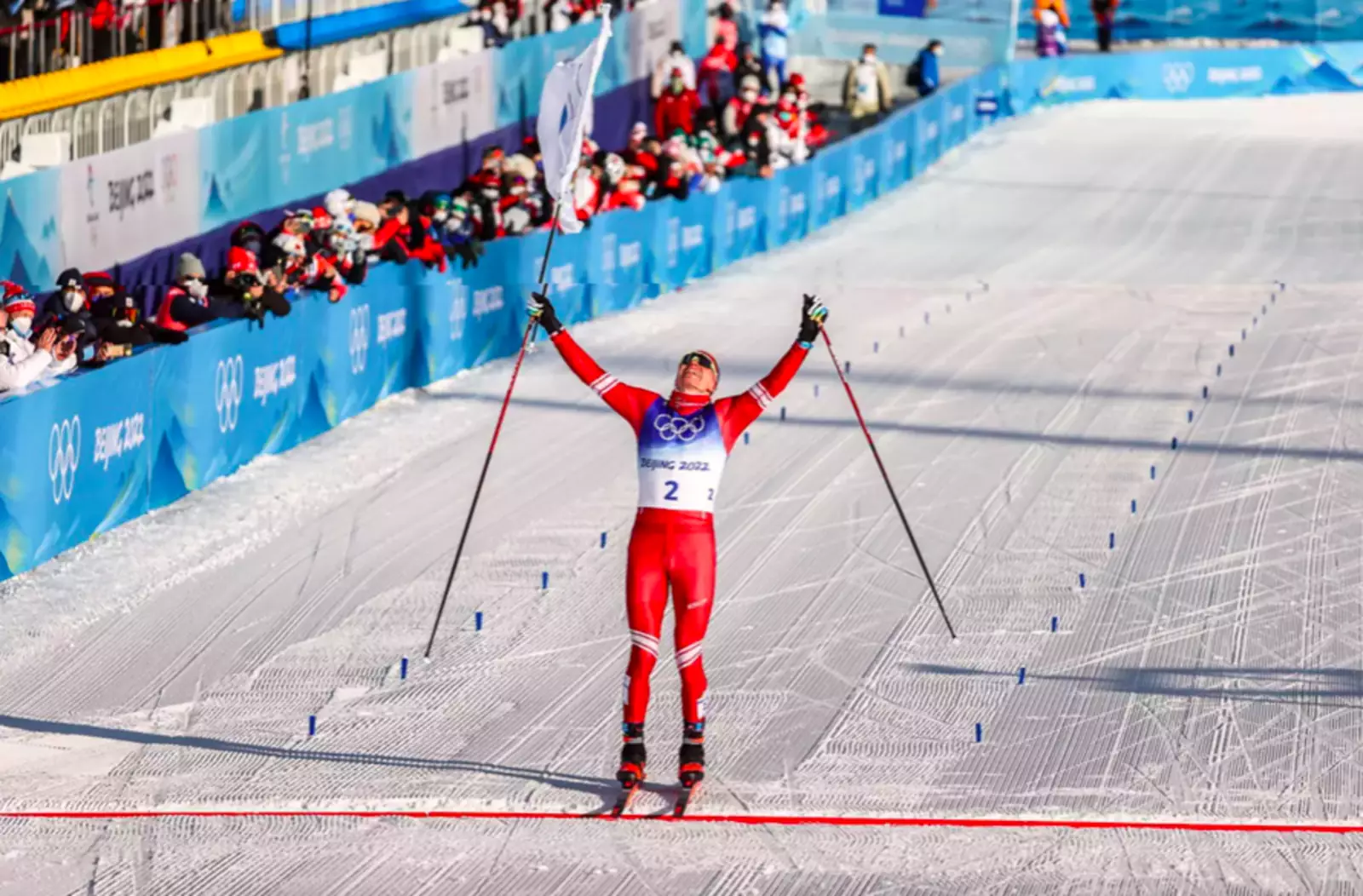 Первое олимпийское золото на зимних Играх в Пекине принес России лыжник Александр Большунов. Он стал победителем в скиатлоне, преодолев 30-километровую дистанцию за 1 час 16 минут 9,8 секунды.