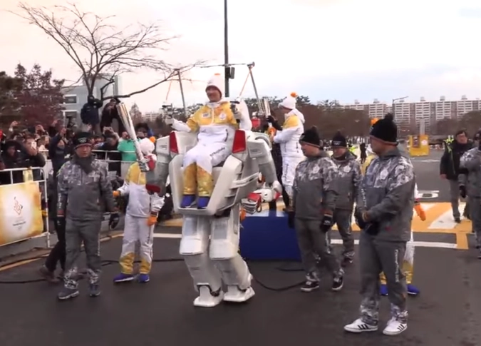 Обычно огонь проносят через города спортсмены, но в этом году эстафету впервые поддержал робот HUBO, разработанный инженерами Корейского передового института науки и техники (KAIST). Передача огня состоялась в городе Тэджон, где робот-гуманоид передал факел своему создателю — профессору О Чун-хо.