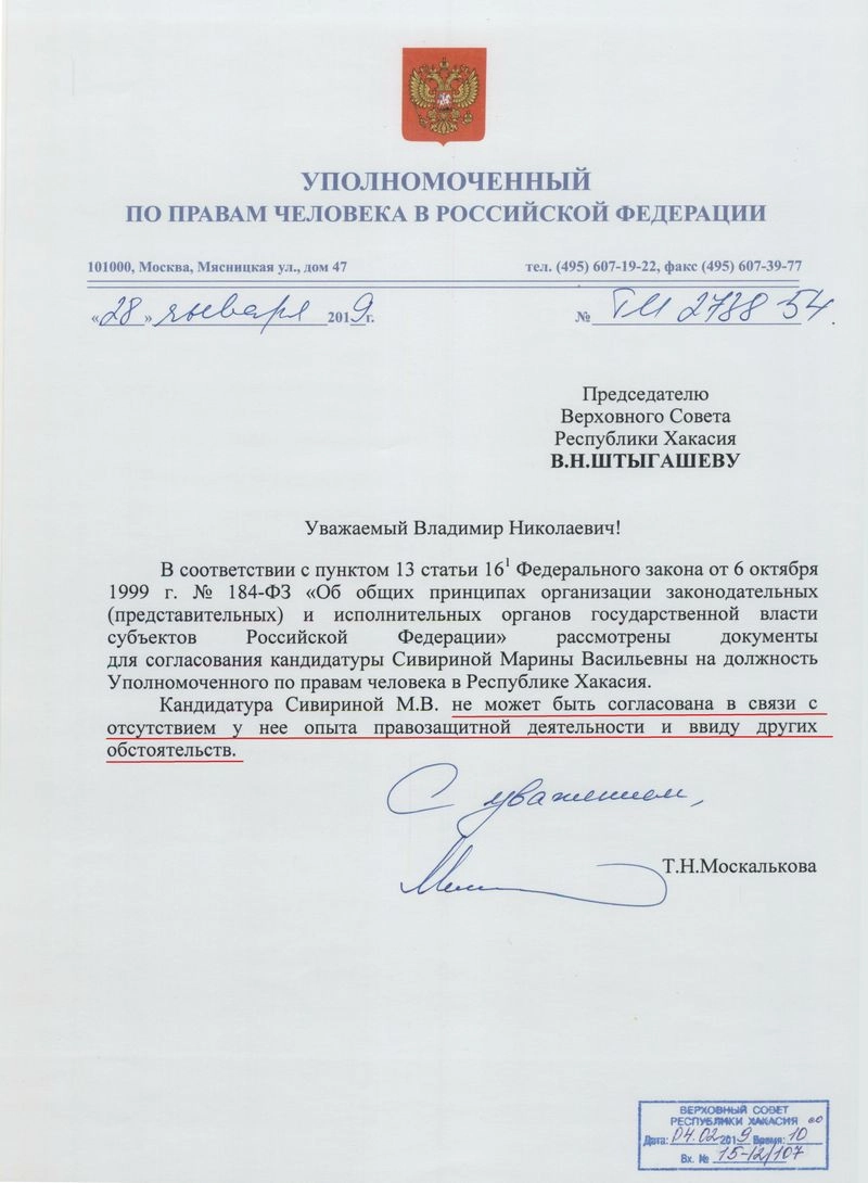 Едва вступивший в должность губернатор выдвинул на пост защитника прав человека в республике экс-судью Марину Сивирину — но ее кандидатура не устроила всероссийского омбудсмена Татьяну Москалькову. «Не может быть согласована в связи с отсутствием у нее опыта правозащитной деятельности и ввиду других обстоятельств», — указано в вердикте.