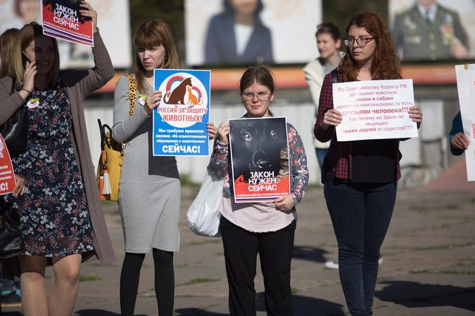По мнению зоозащитников, вышедших на митинг, необходимо принять закон, ограничивающий не только жестокое отношение к животным, но и пропаганду жестокости в отношении братьев наших меньших.