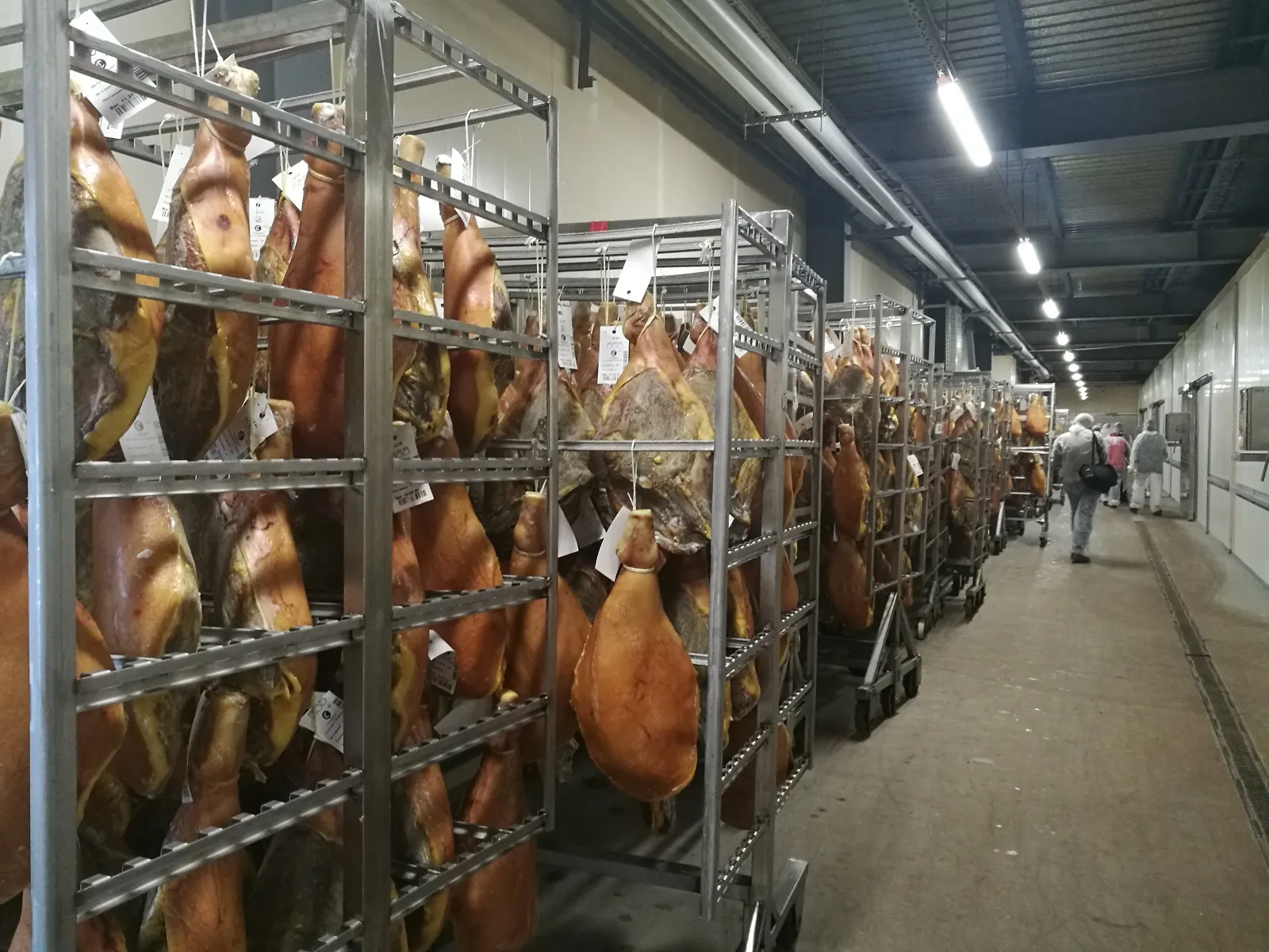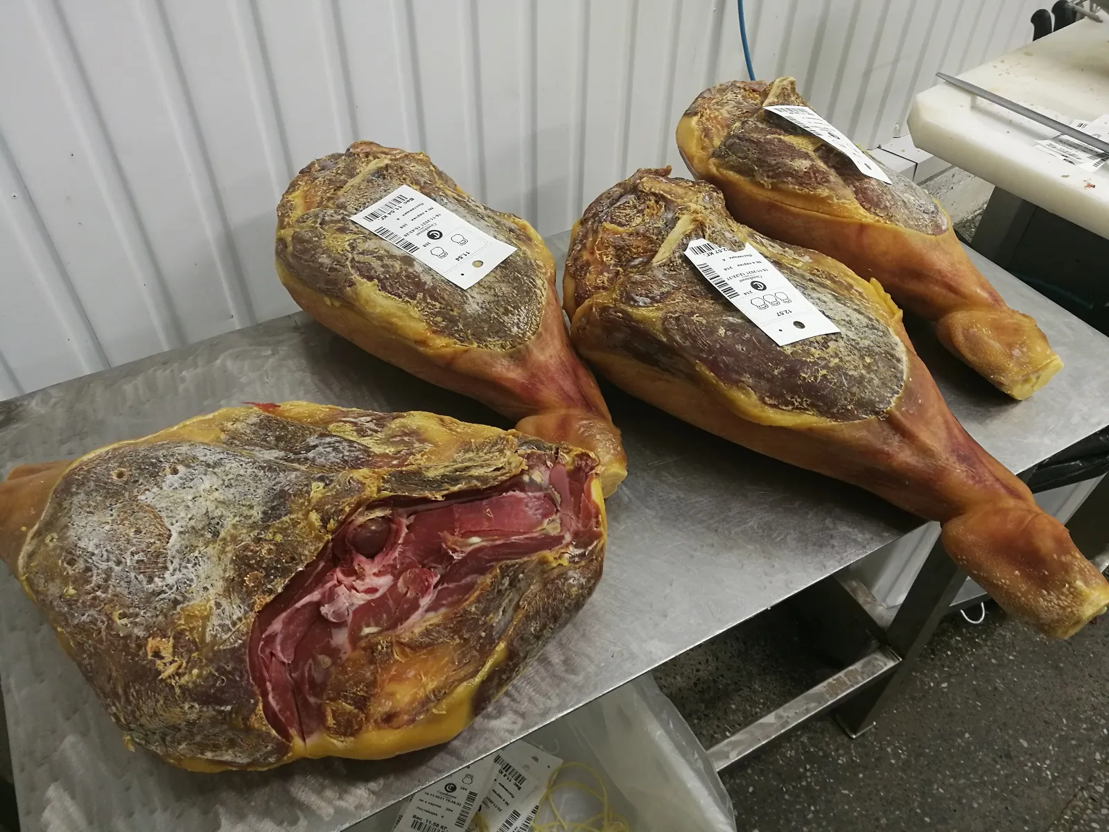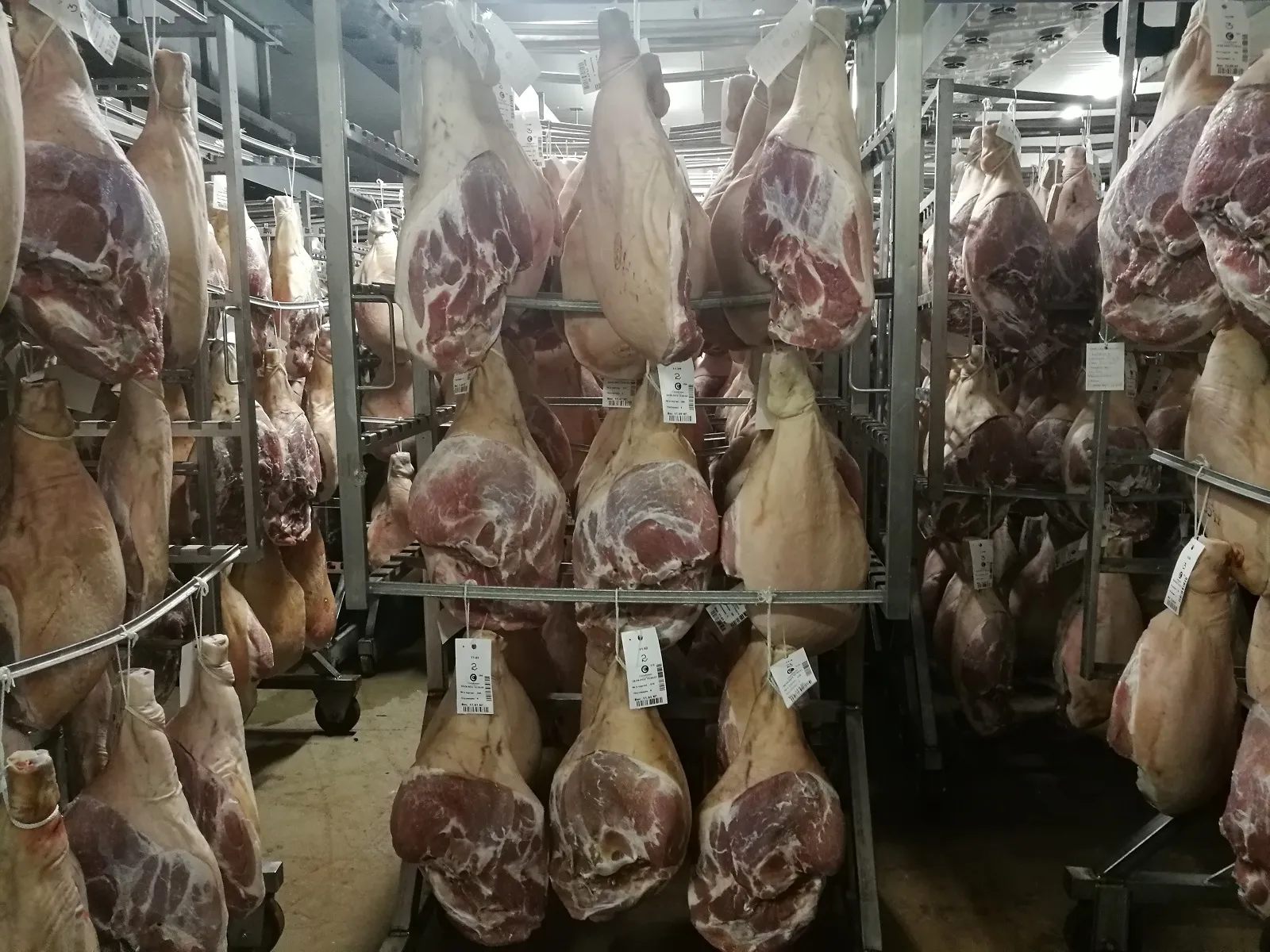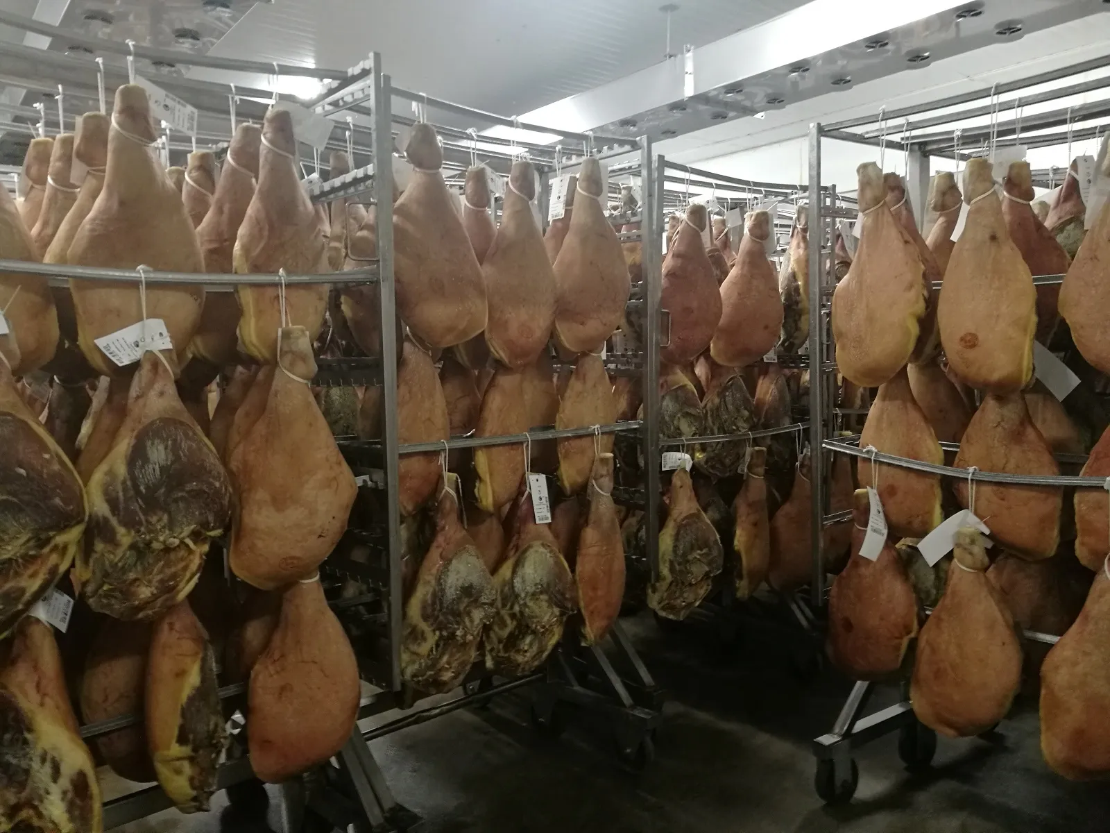 Хамон здесь созревает в среднем от девяти месяцев до полутора лет. Конкретный срок зависит в том числе от исходных физико-химических параметров окорока — веса, жирности, влажности. Ведь все свиньи выращиваются в различных условиях, по-разному питаются — только комбикормом или с выгулом на пастбище, у них отличается соотношение белковых и жировых тканей.