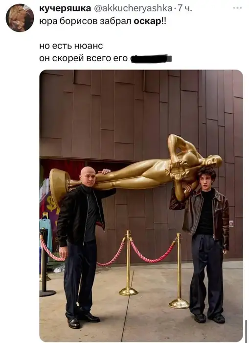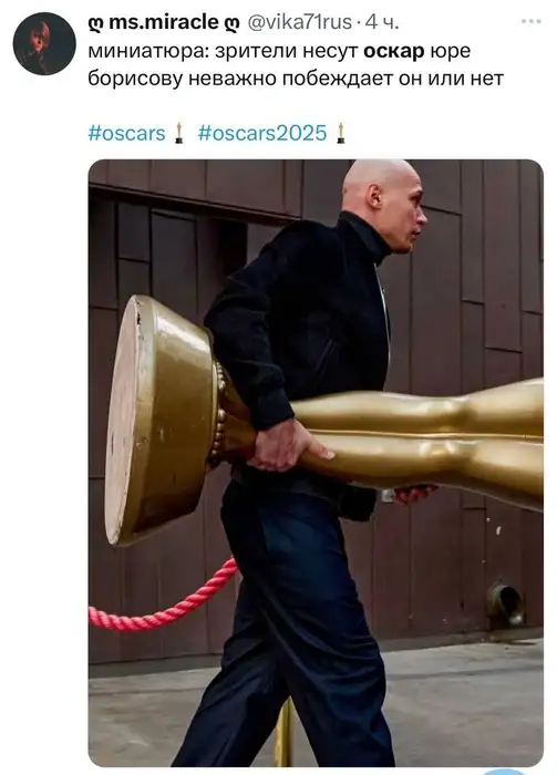 «Зрители несут „Оскар“ Юре Борисову. Неважно, побеждает он или нет», — отмечено в подписи к картинке.