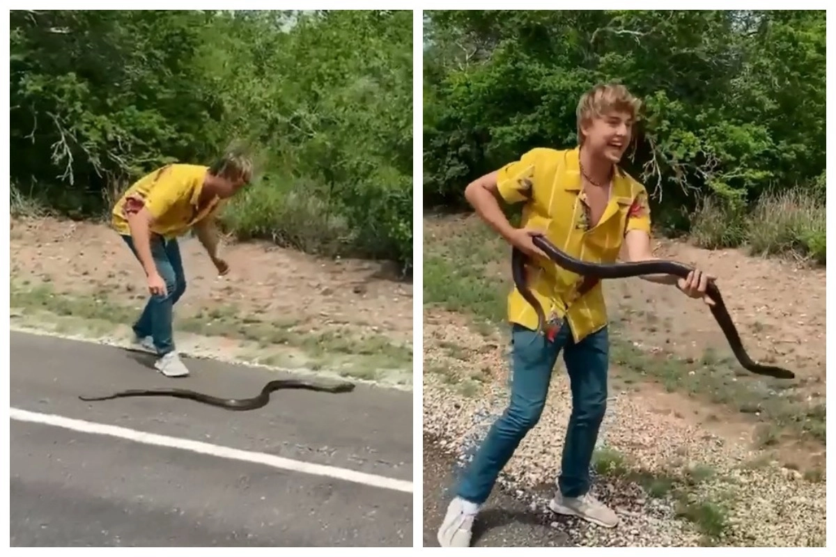 Герой сегодняшнего ролика — молодой парень по имени Ноа Хамфлетт — ехал по просторам штата Техас и увидел переползающую через дорогу змею. Увиденное вызвало у него неподдельный восторг, поэтому он остановился и решил познакомиться с пресмыкающейся «красоткой». Его приятель заснял происходящее на видео, которое впоследствии завирусилось в Reels.