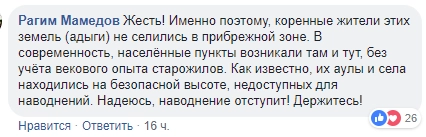 Другой пользователь Сети, комментируя последствия стихии, напомнил, что именно поэтому аулы и села коренных жителей этих земель «находились на безопасной высоте, недоступной для наводнений».