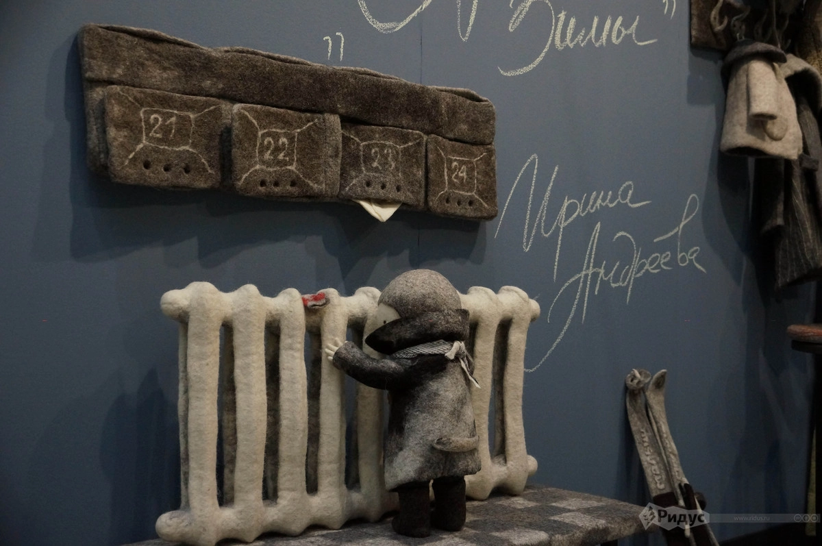 Другой, наиболее запавший в душу проект — «Притяженье зимы» Ирины Андреевой. Его главные герои — войлочные куклы, выполненные в стиле одного старого и очень доброго советского мультфильма.