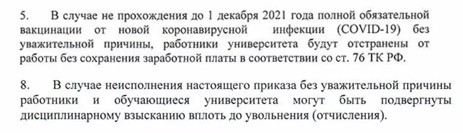 Сегодня Пермский национальный исследовательский политехнический университет (ПНИПУ) обнародовал приказ, согласно которому преподаватели и студенты, которые не вакцинируются от коронавирусной инфекции без уважительной причины до 1 декабря этого года, будут уволены и отчислены.