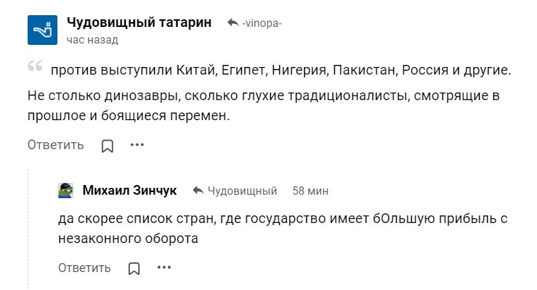 Как cообщает The New York Times, против такого решения комиссии выступила Россия. Вместе с ней против исключения каннабиса из списка особо опасных наркотиков проголосовали представители Китая, Египта, Нигерии, Пакистана.