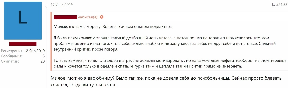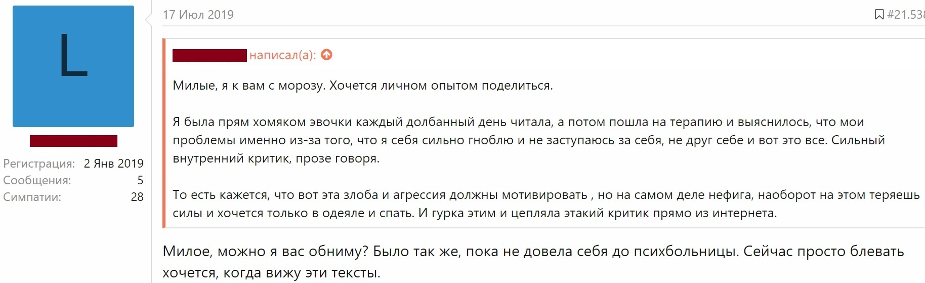 Я лично год писала на блогершу заявление в прокуратуру, поскольку она оказывала услуги, входящие в область глубокого психоанализа, без образования, лицензии и практики, — сказала собеседница «Ридуса».