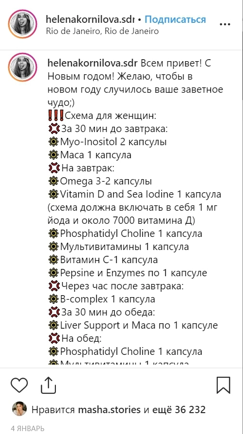 Он обратил внимание на то, что в одном из постов Елены Корниловой было сказано: «Вам плохо от моих таблеток? Это нормально!» Помимо этого, с его слов, блогер также советовала людям, какими БАДами лечить негативные последствия от уже принятых БАДов.