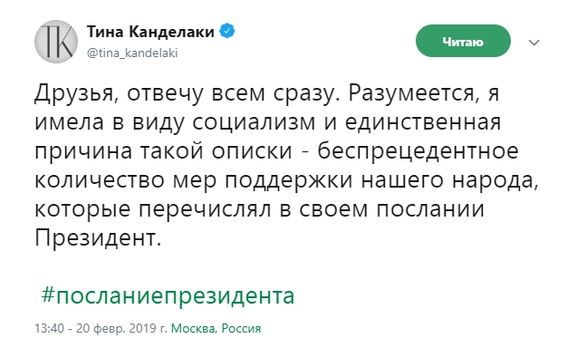 Спустя час Канделаки извинилась перед подписчиками и объяснила, что имела в виду социализм.