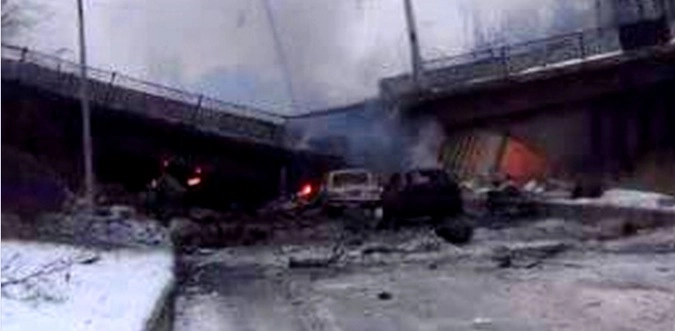 Так накануне, в воскресенье, под Путиловским мостом были остановлены прорывавшиеся с боем украинские танки. Мост был взорван и под его завалами оказалась погребена украинская бронетехника. Судьба экипажей не известна.
