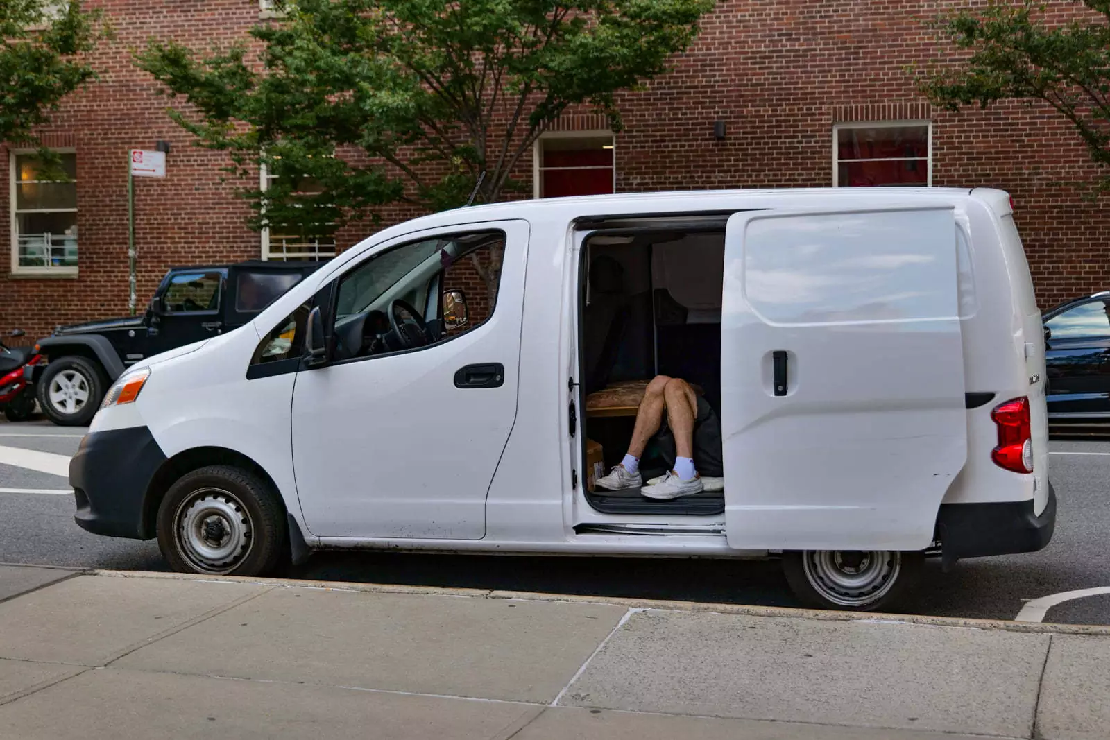 Ловит такси. Никто никогда не свистит при этом и не кричит. Я не знаю, почему в кино так показывают.