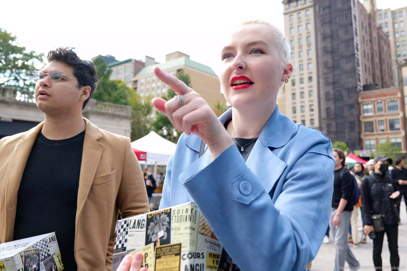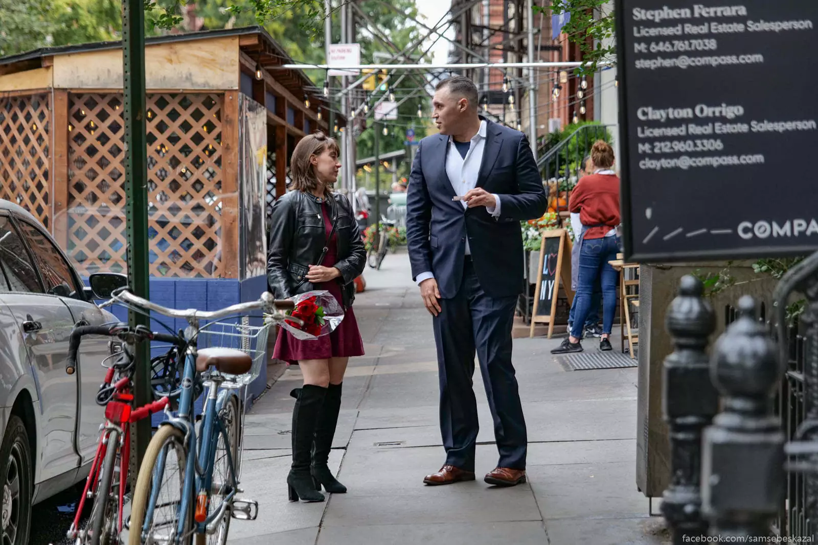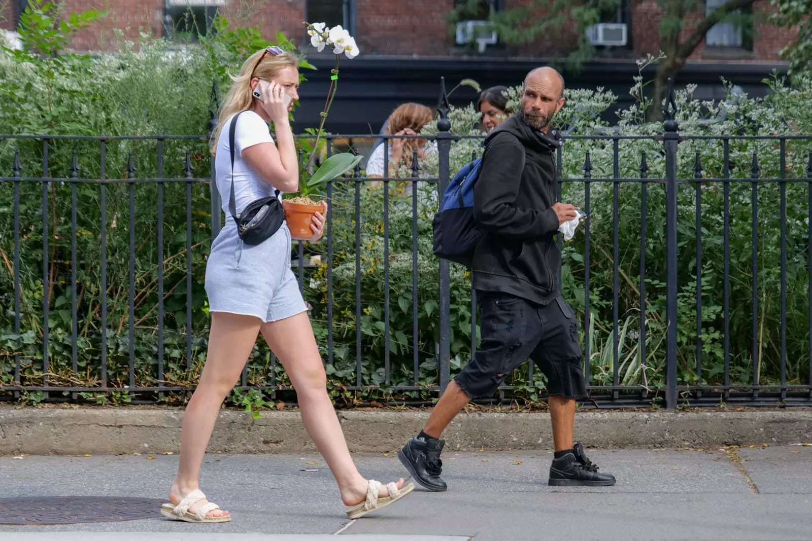 Парочка вышла из кафе, где проходило промо The French Dispatch Уэса Андерсона (коробки в руках) и отправилась на фестивале корейской культуры на Юнион-Сквер.