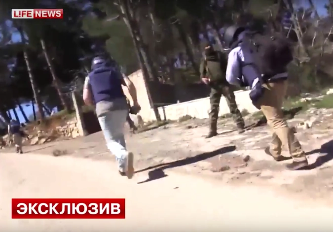 В Сети появилось видео обстрела группы иностранных и российских журналистов в сирийской Латакии.