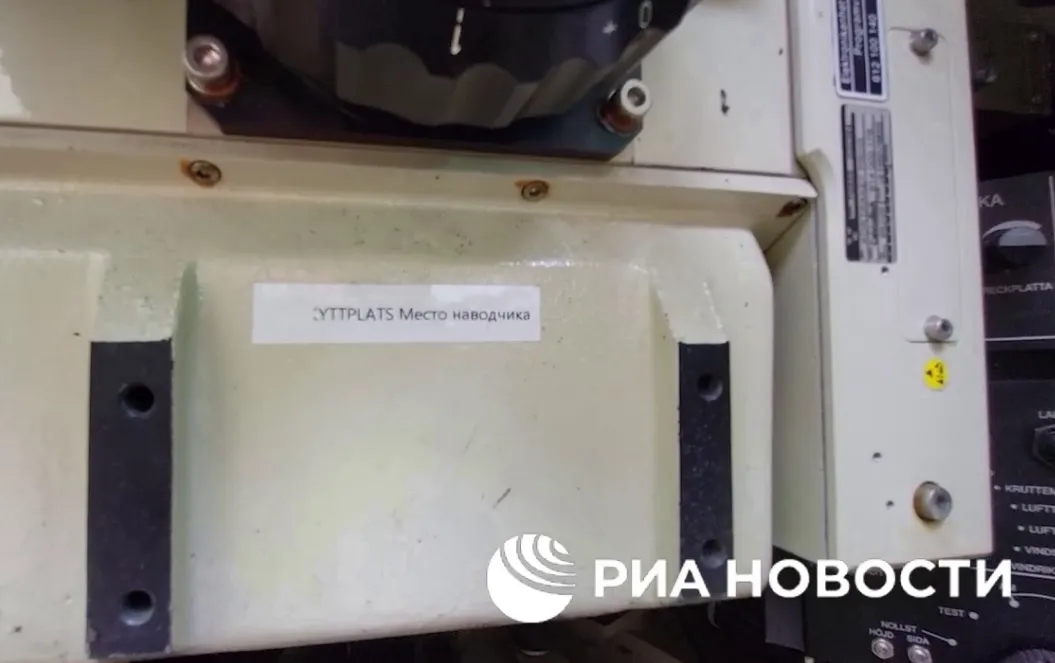 Машину эвакуировали в тыл, и сегодня РИА Новости выложило первое видео со шведским трофеем. Можно увидеть след от попадания гранаты в правый борт и частично продублированные на русский язык надписи внутри машины.