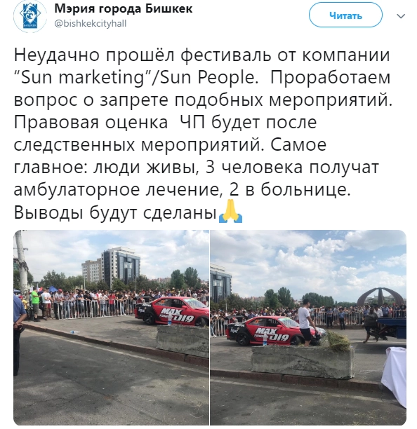 Мэрия Бишкека сообщила в Twitter, что госпитализированы два человека, а трое получат амбулаторное лечение.