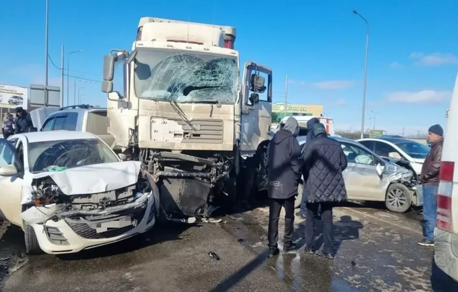 Опубликовано видео с фурой, протаранившей 15 машин на Ставрополье