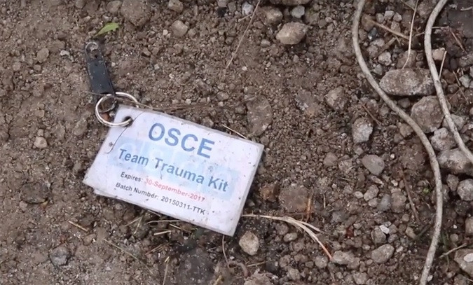 Видео с места подрыва на мине машины Cпециальной мониторинговой миссии ОБСЕ в Донбассе опубликовал телеканалом RT.