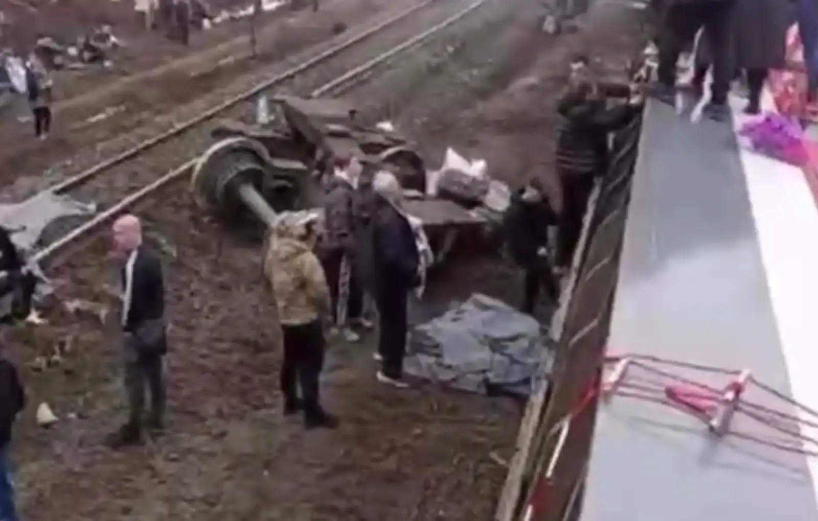 Опубликованы кадры с сошедшим с рельсов поездом в Ульяновской области