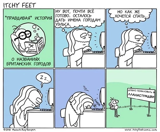 Вы бывали в Уэльсе? А когда-нибудь смотрели на карту Уэльса? Я и подумать не мог, что где-то в мире существуют такие нелепые названия городов! Как вам Понтргайдфендигейд? А Лланибиддер? Лланфиейнджел! Понтарддулаис! Считаете, что я сам придумал эти слова? А вот и нет! Взгляните на карту и убедитесь, что это названия реальных городов и деревень Уэльса.