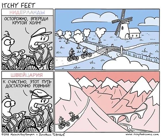 В разных странах люди очень по-разному воспринимают окружающий ландшафт. Например, Швейцария — страна гор, а Нидерланды — равнина.