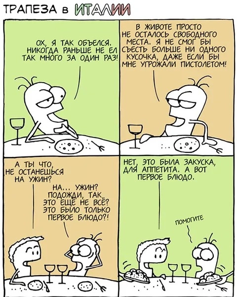 Итальянцы любят принимать гостей и охотно угощают их обедами и ужинами! Но делают это в таких количествах, что далеко не каждый в состоянии справиться с такой обильной трапезой.