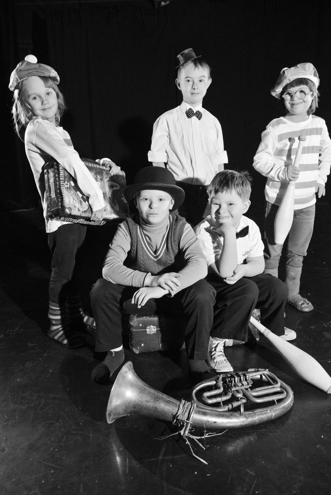 Главные герои фотоисторий – «особые» дети, дети с синдромом Дауна, которые наравне с остальными участниками труппы «Упсала Цирка» тренируются, репетируют и играют в спектаклях.