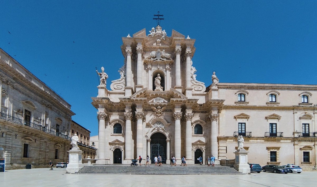 Но изюминка Сиракуз это собор Богоматери в слезах. Да товарищи, это кафедральный собор, хотя больше напоминает странный гибрид космического корабля и бункера. Нетрудно догадаться, что новодел, зато какой. Раньше на этом месте стояла скромная церквушка, но однажды одна из икон заслезила. Народ быстро кинул клич, собрали пожертвования, старое здание снесли и на его месте отгрохали здание «немного» посолиднее.