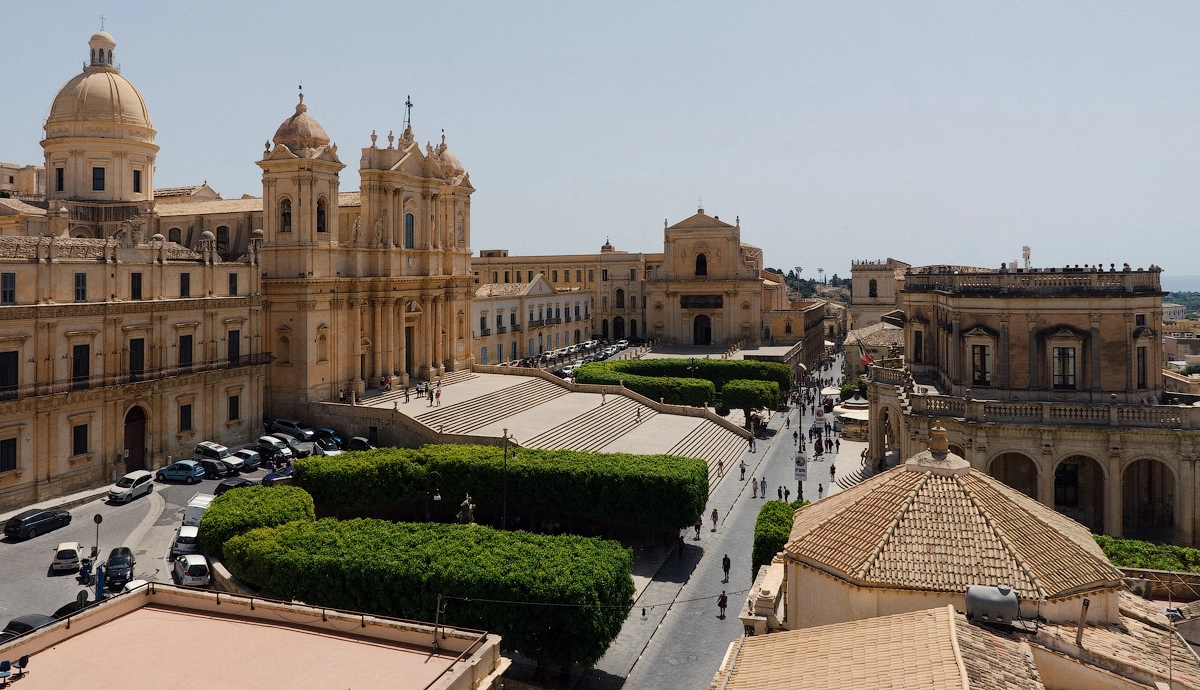 Но вернемся к Ното, я вообще понятия не имел, откуда этот город взялся у нас в путевом листе, но пока мы туда ехали Юлька-тревел устроила мне небольшой ликбез, который я сейчас и продублирую. Был такой великий город Ното, процветал, был культурным центром и вообще всё у него было хорошо. Почему было? Да потому что в 1693 году было нормальное такое землетрясение, что разрушило старый Ното, полностью. Так что версию 2.0 было решено построить с нуля, с учетом тогдашних трендов — улицы широкие (ну по меркам Сицилии) и прямолинейные, все культурное наследие расположено на единой площади, здания все, как под копирку, в стиле барокко.