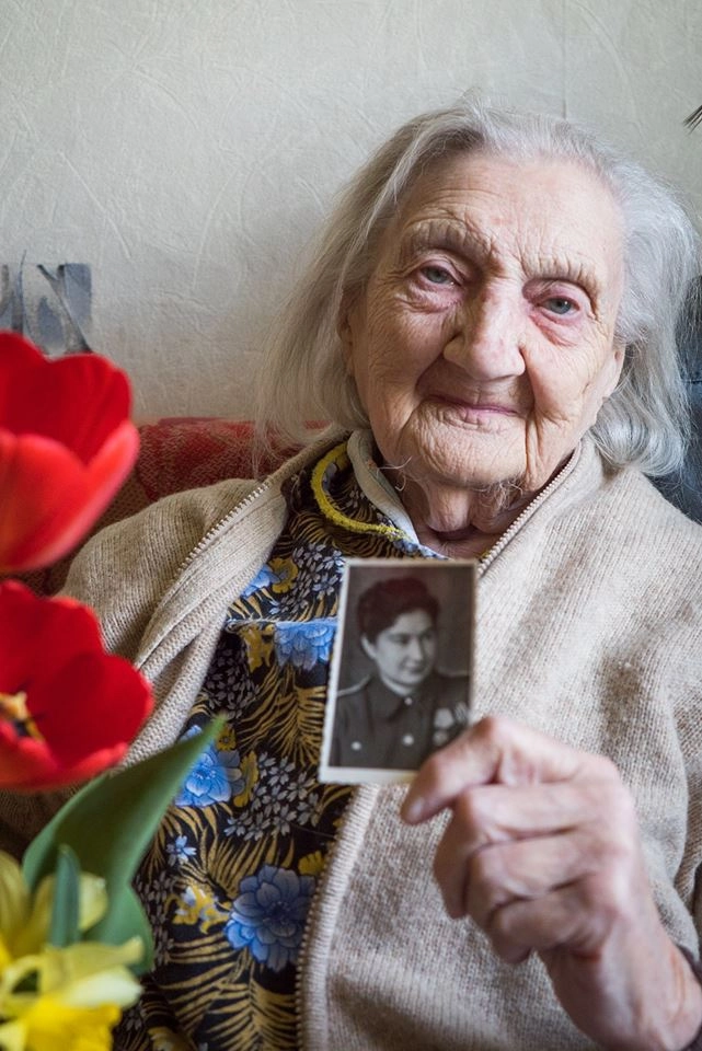 «9 мая 2015 года. Старший лейтенант медицинской службы Бородулина Наталья Глебовна смотрит Парад Победы. Война для неё началась 22 июня 1941 года в Ленинграде, в День Победы 1945 года была в Польше, демобилизовалась в 1946 году», — пишет внук Андрей Бородулин.