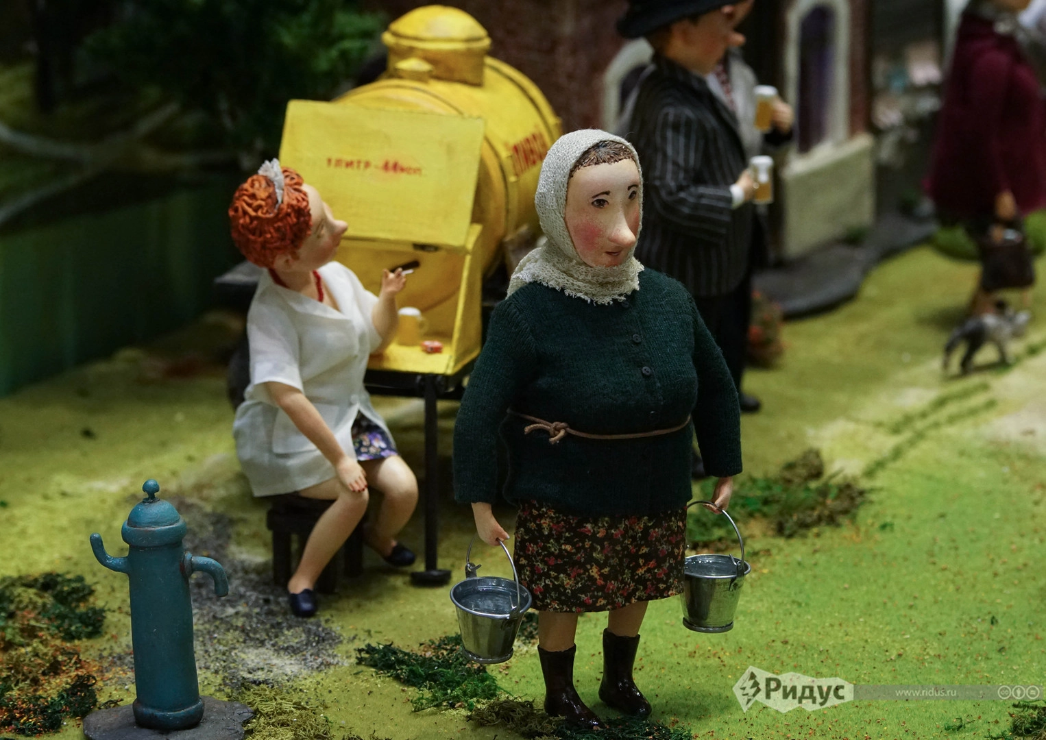 Прямой противоположностью богемным и стильным образам от Паши Сетровой является другой запавший в наши души проект — от трех российских мастериц «Под небом голубым». Проект создан по мотивам картин замечательного художника Валентина Губарева. Его персонажи — самые обычные люди, проживающие свою жизнь со всеми ее горестями и радостями в провинциальном русском городке из не совсем понятно какой эпохи. С одной стороны, в нем угадывается атмосфера 70-х или 80-х годов прошлого века, о чем свидетельствуют характерная желтая бочка «Пиво», уличные афиши или забавный деревянный сортир с неизменной надписью «М-Ж». Но с другой — все персонажи вполне могут быть и из нашего времени. По крайней мере, об этом может свидетельствовать одна из героинь, вышагивающая по городку с айфоном в руках. Эта маленькая особенность наводит на мысль, что жизнь в таких местах практически замерла и течет со всей своей неторопливостью, превращая их в своеобразные, чуждые столичной суете временные анклавы.