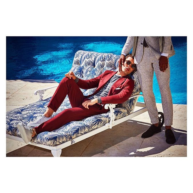 Магазин костюмов Suitsupply использовала для продвижения весенней коллекции снимки целующихся стильно одетых мужчин.