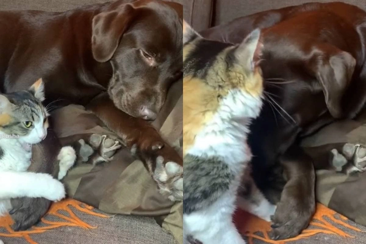От сильной любви: кошка сделала лабрадору кусь и влюбила в себя всех