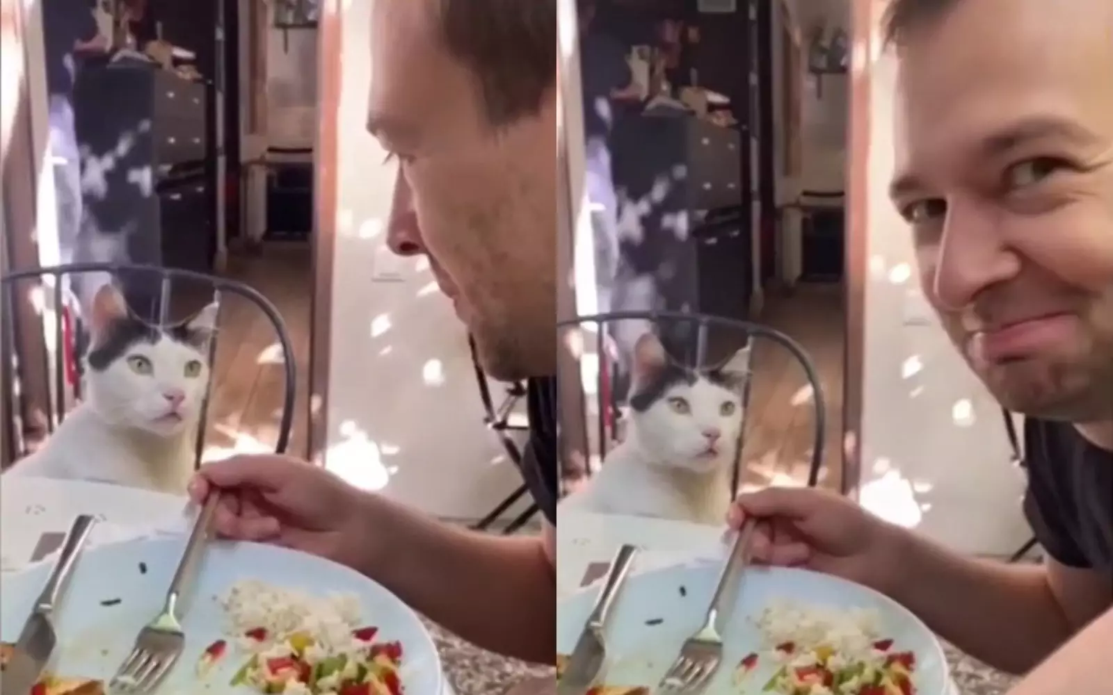«Отдай мне свой ужин»: гипнотизирующий хозяина кот насмешит любого