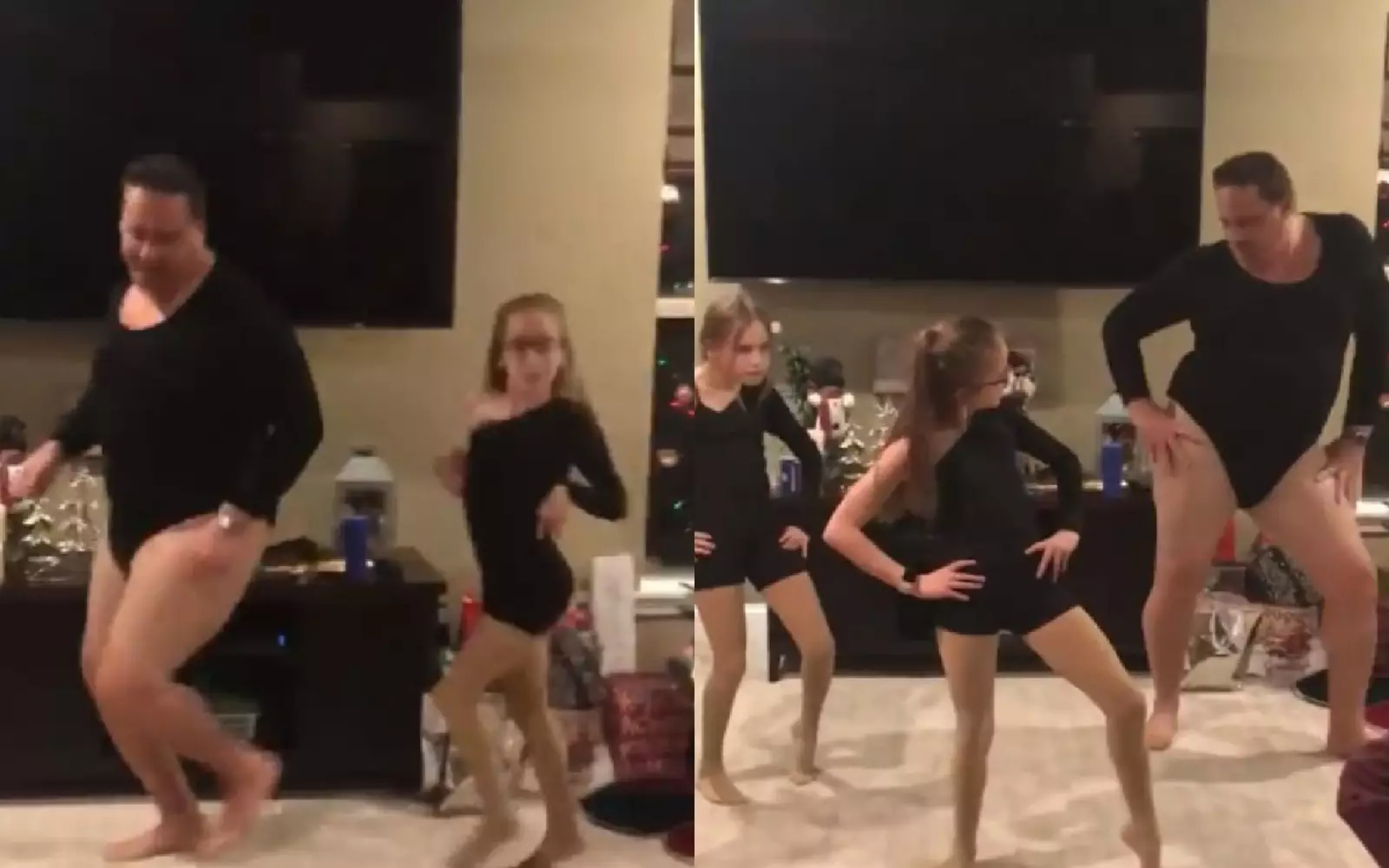 Отец надел обтягивающее боди и колготки ради танца с дочками и взорвал интернет
