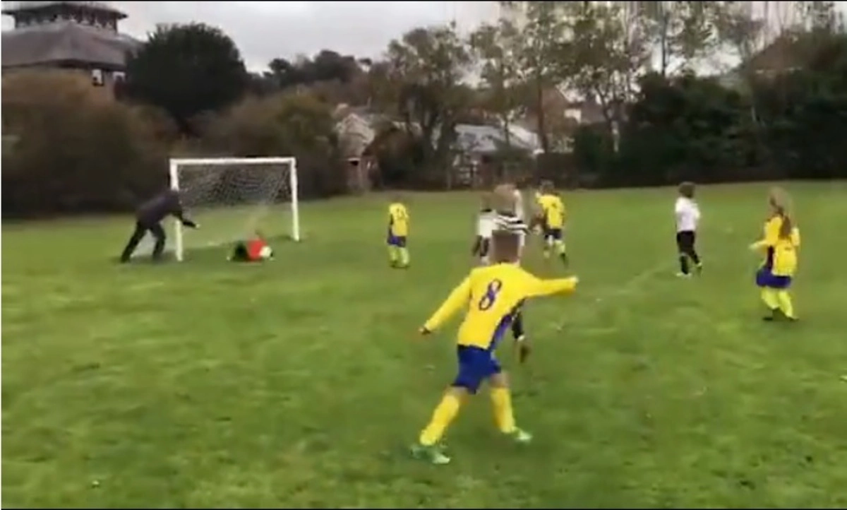 В Сети стал вирусным ролик с детского футбольного матча, на котором запечатлён смешной момент. Игра проходила в Уэльсе между командами Bow Street Magpies и Ysgol Llanilar. На кадрах, снятых на мобильный телефон, видно, как игрок в жёлтой форме бьёт по воротам соперника, а в этом время мальчик-вратарь смотрит в другую сторону и не видит опасности. Но рядом стоит отец юного голкипера, который, недолго думая, толкает мальчишку, и тот, падая, отбивает гол своим телом.