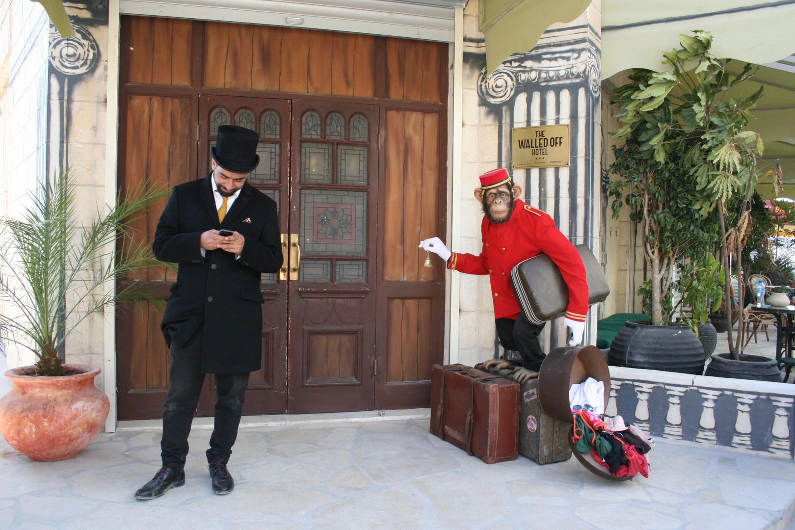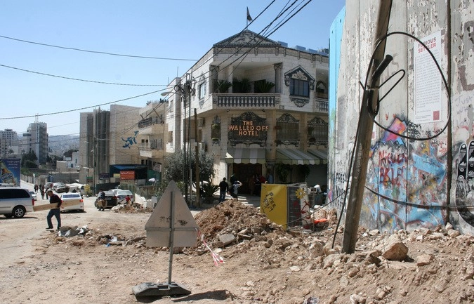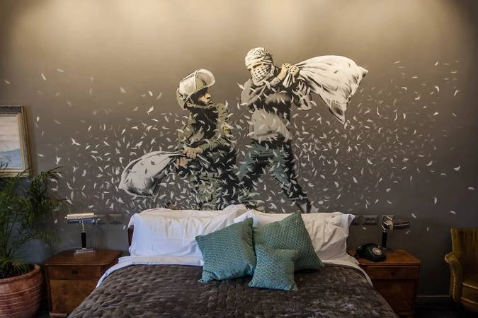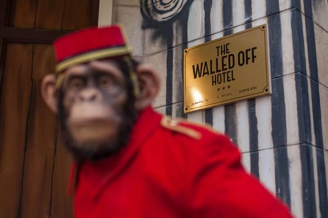 Знаменитый уличный художник Бэнкси, личность которого до сих пор не установлена, открыл гостиницу в палестинском городе Вифлеем на границе с Израилем и назвал её «Walled Off Hotel», что переводится как «Обнесенный стеной отель».