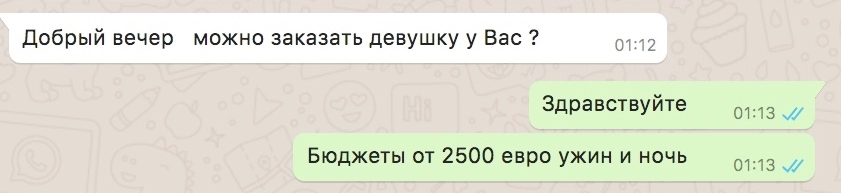Как рассказала собеседница «Ридуса», в настоящее время она занимается только деятельностью менеджера. Клиентов и девушек находит на своем сайте или же с помощью «сарафанного радио». Мужчины в основном пишут в мессенджерах, а девушки — в соцсети «Вконтакте».
