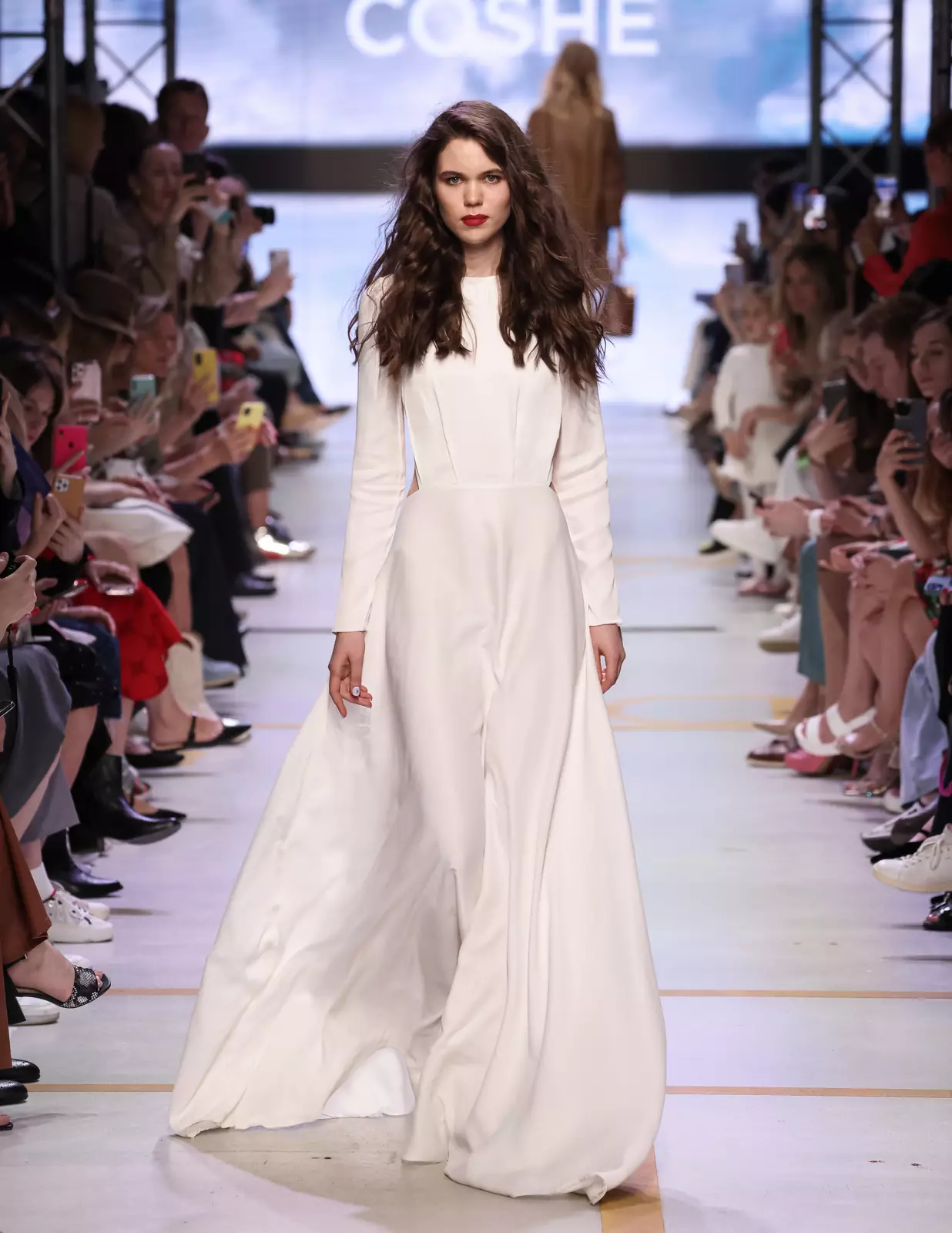 В новой коллекции дизайнер бренда COSHÈ сделала ставку на кожаные вещи: жилеты, юбки, мужские и женские бомберы, куртки, платья соседствовали с отличными по фактуре вещами, что создавало сбалансированный контраст. Кожа также нашла свое проявление в виде оторочек на платьях, пиджаках, куртке и классическом тренче. Яркими акцентами в коллекции стали неоново-зеленый спортивный костюм, изумрудный кожаный бомбер и ярко-голубой брючный костюм. Финальным аккордом показа стало белое платье в пол с открытой спиной из струящейся ткани, которое вполне может стать свадебным нарядом для современной невесты.