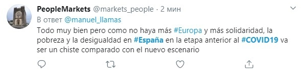 Все очень хорошо, но так как европейского единства и солидарности больше нет, бедность и неравенство в Испании до эпидемии покажутся нам шуткой в сравнении с нашим будущим.