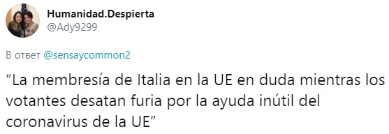 Смысл членства Италии в ЕС сомнителен, так как избиратели в ярости от бесполезной против коронавируса помощи Евросоюза.