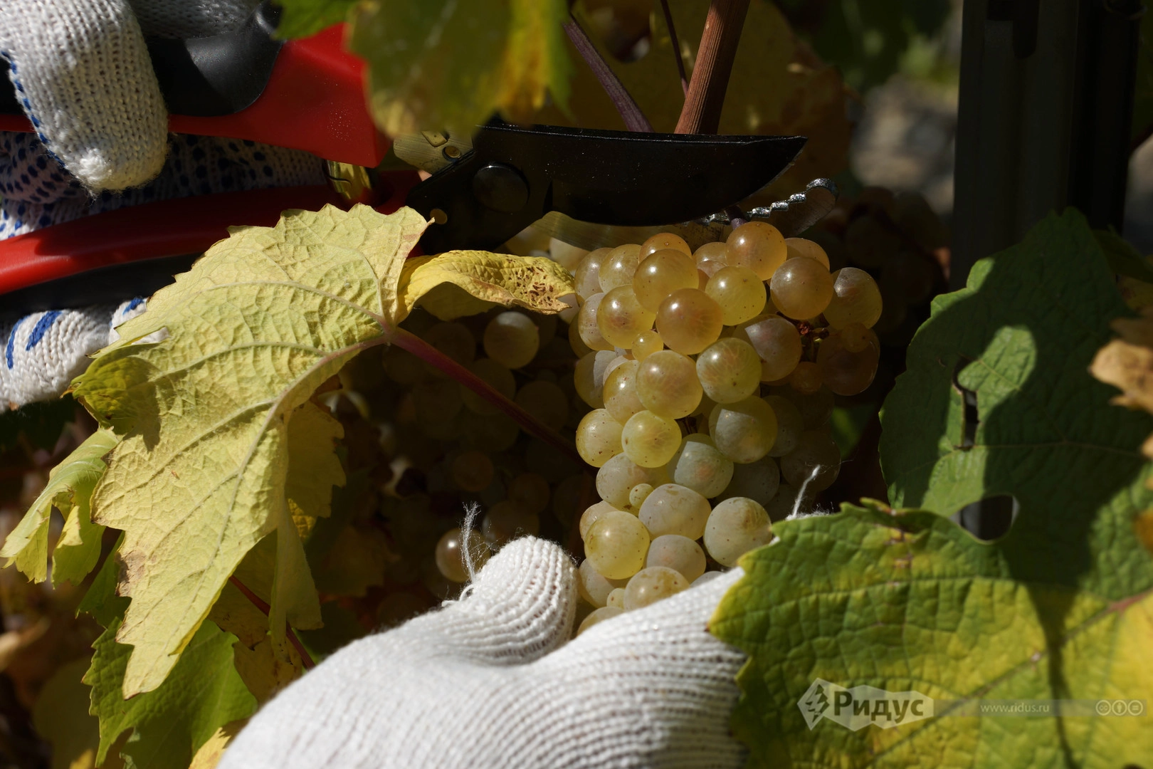 Сбор винограда осуществляется при помощи секатора и пластиковых корзин