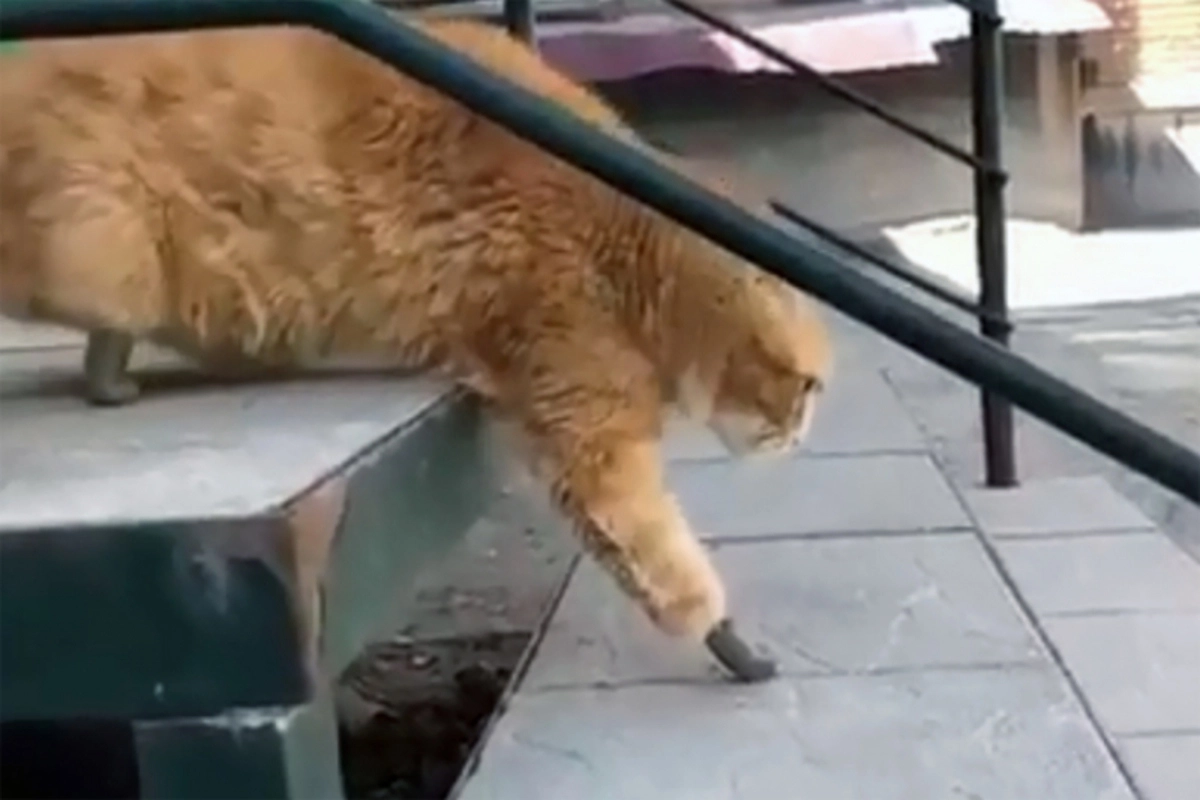 Отморозивший лапки кот впервые ходит на четырех протезах