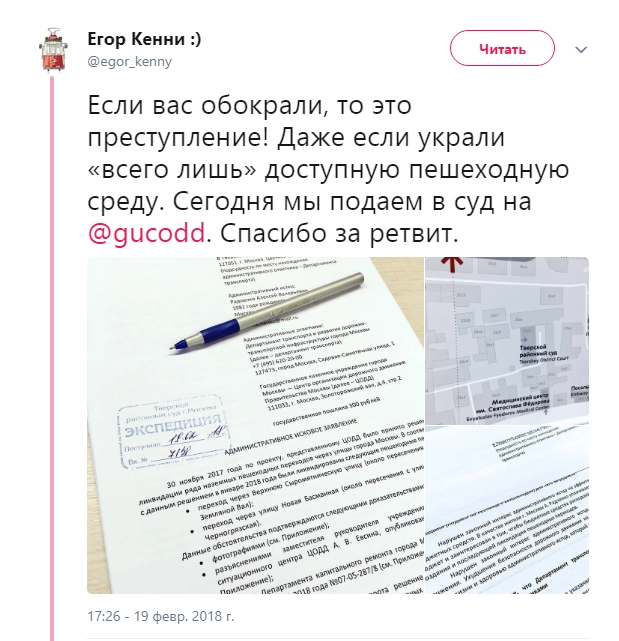 «Москвич подает в суд на Дептранс» — вижу такой громкий заголовок. Ну, а ниже и того сильнее — обвинение в «геноциде пешеходов».