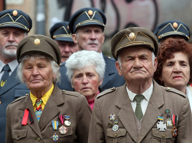 Ветераны Украинской повстанческой армии (ОУН-УПА) перед началом марша в день Праздника Героев во Львове. © Петр Задорожный/РИА Новости