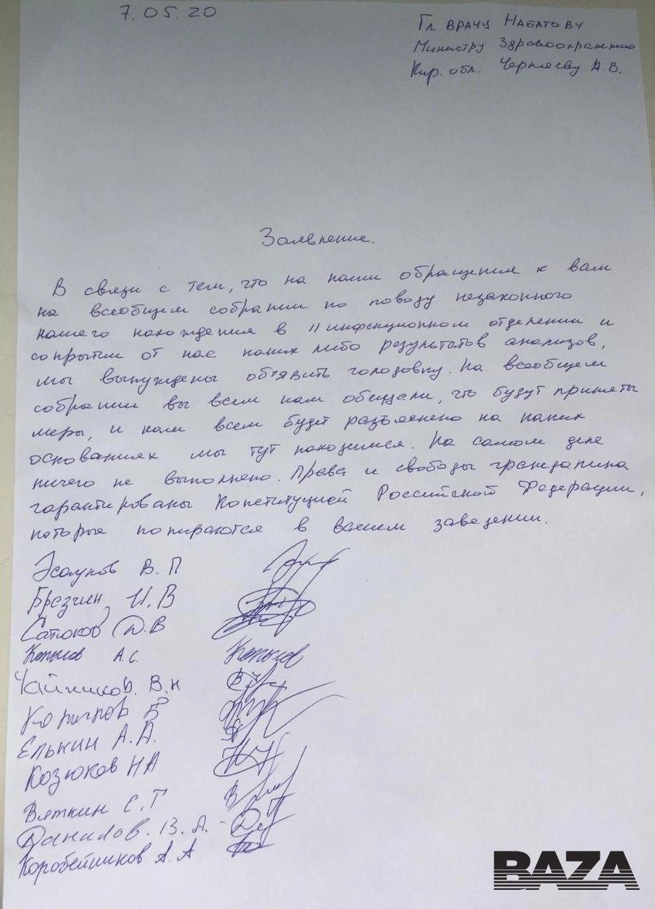 Telegram-канал Baza пишет, что 11 пациентов Ганинского госпиталя в Кировской области устроили голодовку. Все дело в том, что, по их словам, они не могут узнать результаты анализов на коронавирус.