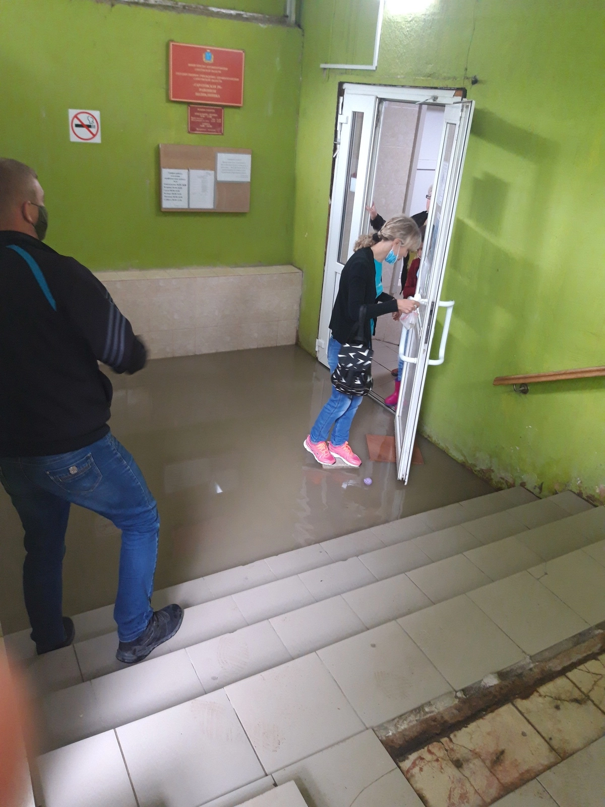 Поликлиника в Жасминке. Потопы на входах и в кабинетах. Затоплен также весь первый этаж. Людям предлагают входить в больницу через окно. Такой случай уже не в первый раз, — гласит сообщение, опубликованное сегодня в группе.