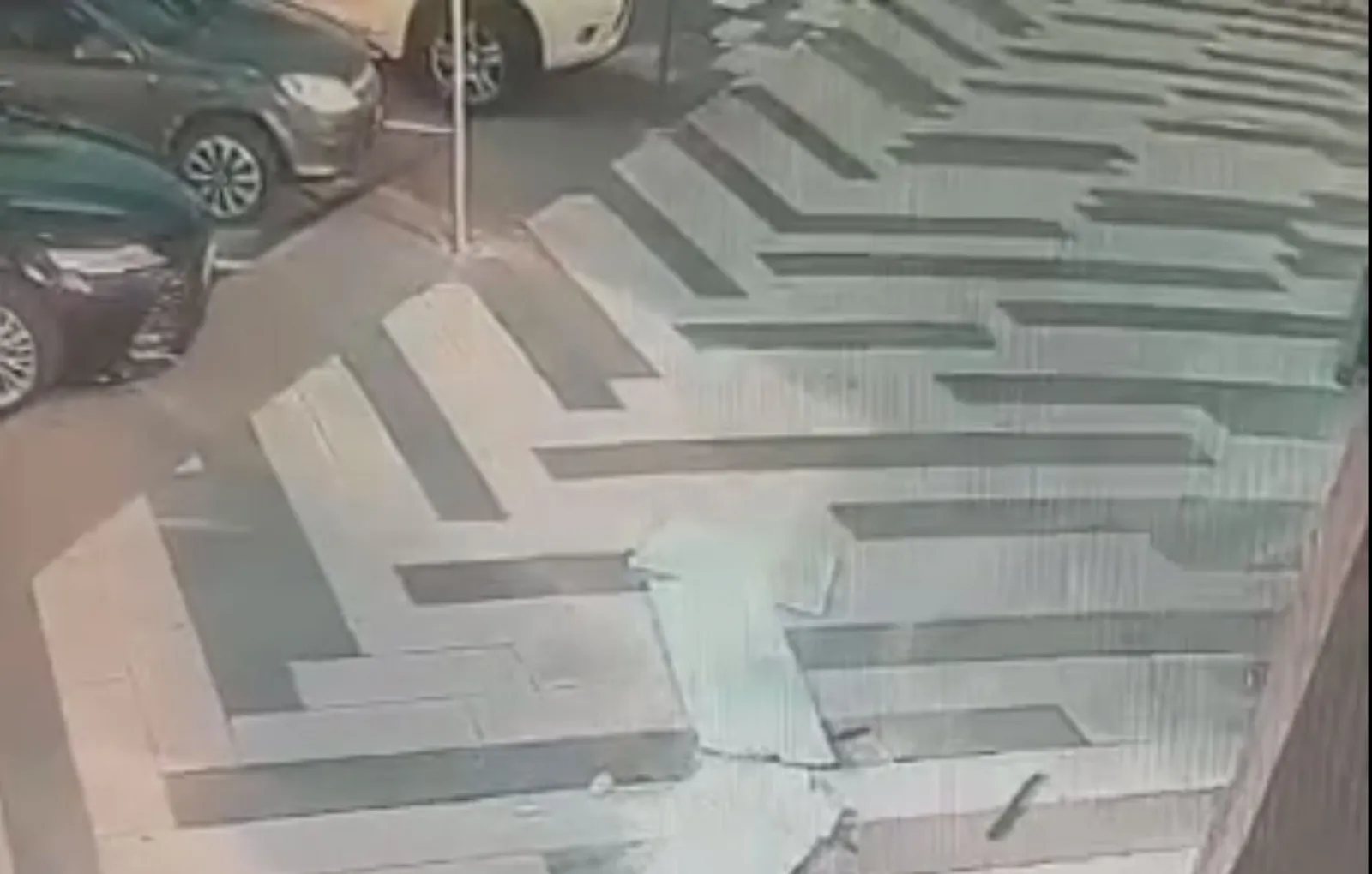 Падение стекла рядом с жилым домом в Москве попало на видео